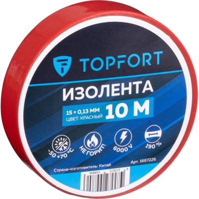 Изолента TOPFORT ПВХ 15 мм x 10 м красная (1687226)