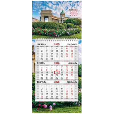 Календарь квартальный 2026 г., 1 блок, 1 гребень, бегунок, МИНИ, офсет, brauberg, "Санкт-Петербург", 116843