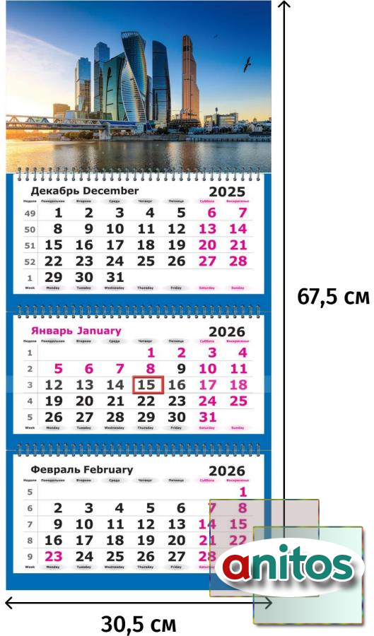 Календарь настенный 3-х блочный 2026 Москва-сити 30.567.5 см