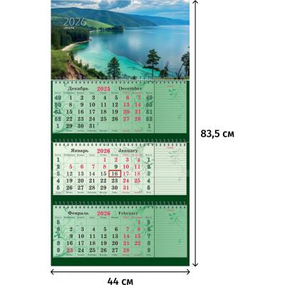 Календарь настенный 3-х блочный 2026 Attache,Супер-Прем+блок,Байкал,440х835