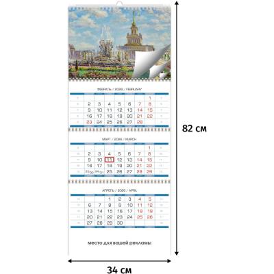 Календарь настенный 3-х блочный квартальный 2026 год Очарование Москвы 3482 см<br><br>Настенный квартальный перекидной календарь на 2026 год. 4 сменных постера 340240 мм, мелованная бумага, 4+0, 3 календарных блока 340160 мм, мелованная бумага, 4 пружины, 1 ригель, курсор, место для рекламы 34080 мм. Календарь с репродукциями картин художника Андрея Ковалевского.