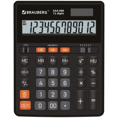 Калькулятор настольный BRAUBERG AAA-888 (202x159 мм), 12 разрядов, ЧЕРНЫЙ, двойное питание, 273981