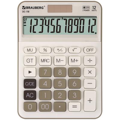 Настольный калькулятор BRAUBERG DC-118 сочетает стильный дизайн, устойчивый корпус и большие округлые кнопки для удобного ввода. Оснащение солнечной батареей делает его надежным помощником в офисе, школе и дома.