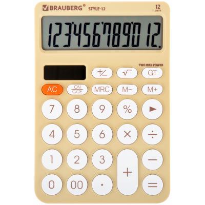 Настольный калькулятор BRAUBERG STYLE-12-BG. Стильный устойчивый корпус с большими круглыми кнопками оснащен солнечной батареей для эффективной комфортной работы в офисе, школе или дома.