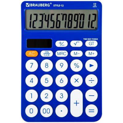 Настольный калькулятор BRAUBERG STYLE-12-BL. Стильный устойчивый корпус с большими круглыми кнопками оснащен солнечной батареей для эффективной комфортной работы в офисе, школе или дома.