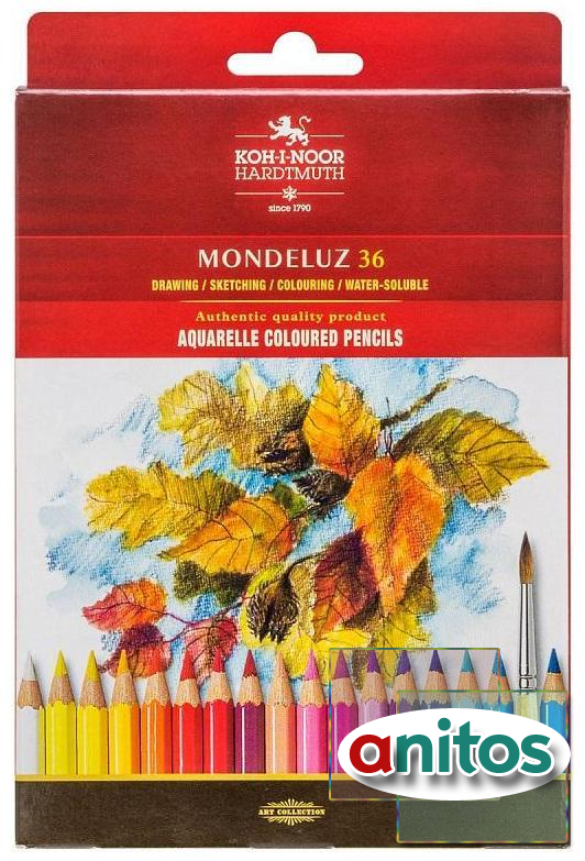 Карандаши акварельные Koh-I-Noor Mondeluz. Шестигранный корпус изготовлен из кедрового дерева. Длина стержня - 175 мм. Диаметр грифеля - 3,8 мм. Поставляется в картонной коробке с европодвесом.