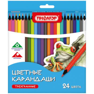 Карандаши цветные ПИФАГОР СТАНДАРТ 24 цвета, трехгранный корпус, 182088