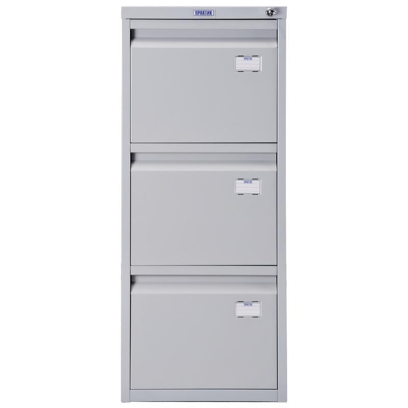 Картотека ПРАКТИК A-43 предназначена для рационального и удобного хранения документов, предназначена для файловых подвесных папок формата А4. Ящики выдвигаются на всю глубину и имеют дно (возможность хранения любых офисных и личных вещей). Комплектуется ключевым замком (1000 комбинаций) с возможностью смены цилиндра. - Тип материала - металл - 0,8 мм. - Кол-во ящиков - 3 - Внутренние размеры ящика, мм (ВхШхГ): 255x327x424 - Максимальная нагрузка на ящик - 20 кг. - Формат - А4 - Вместимость одной секции - 42 папок. - Антиопрокидывающее устройство. - Замок - 1 (центральный) - Тип покрытия - порошковое, стойкое к появлению царапин. - Цвет - серый полуматовый. - Гарантия - 1 год