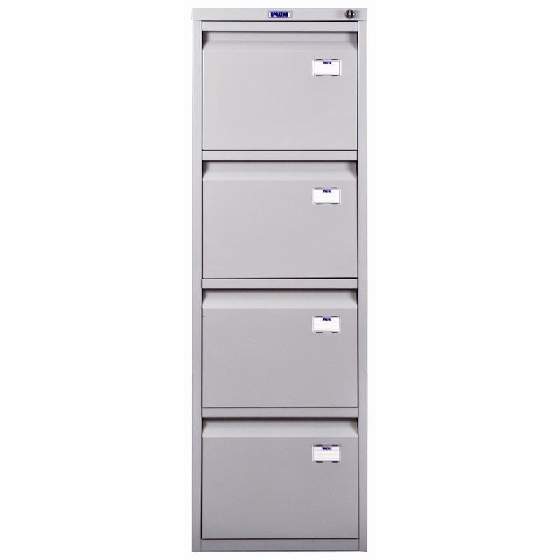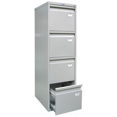 Практик A 44 шкаф картотечный предназначен для рационального и удобного хранения документов предназначен для файловых подвесных папок формата А4. Ящики выдвигаются на всю глубину и имеют дно (возможность хранения любых офисных и личных вещей). Комплектуется ключевым замком (1000 комбинаций) с возможностью смены цилиндра. - Тип материала - металл - 0,8 мм. - Кол-во ящиков - 4 - Внутренние размеры ящика, мм (ВхШхГ): 255x327x424 - Максимальная нагрузка на ящик - 20 кг - Формат - А4 - Вместимость одной секции - 42 папок. - Антиопрокидывающее устройство. - Замок - 1 (центральный) - Тип покрытия - порошковое, стойкое к появлению царапин. - Цвет - серый полуматовый. - Гарантия - 1 год.