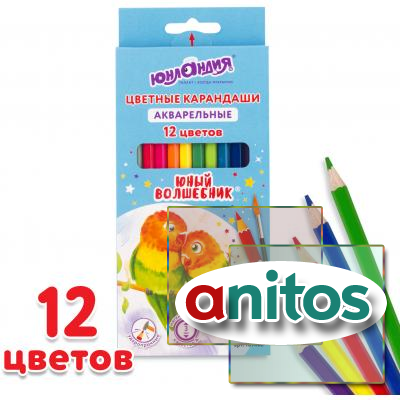 Карандаши цветные акварельные ЮНЛАНДИЯ "ЮНЫЙ ВОЛШЕБНИК", 12 цветов, шестигранные, заточенные, 181402
