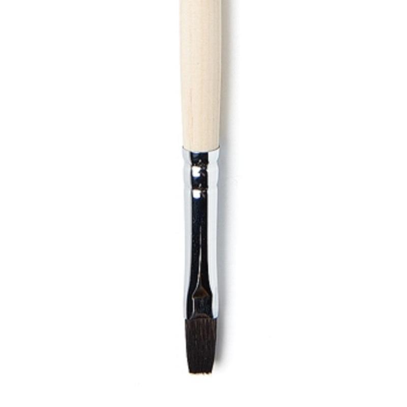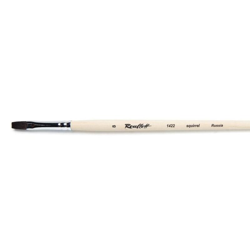 Плоская кисть «Roubloff» из волоса белки идеальна для работы в акварельной технике. У ворса отличная впитываемость и, одновременно с этим, отдача влаги. Ручная обработка волоса. Медная хромированная (серебристая) обойма. Длинная ручка из древесины березы, прозрачный лак. Плоская кисть используется для нанесения фона, выполнения колеровки, прорисовки краеугольных форм и прямых линий. Идеальна для покрытия краской больших площадей, закрашивания фона.