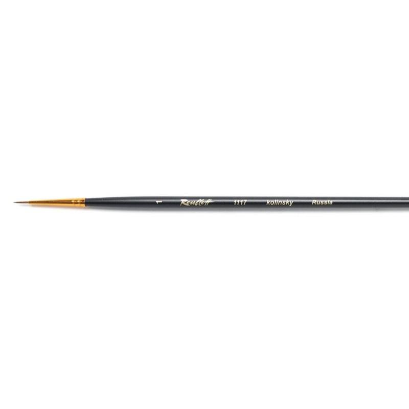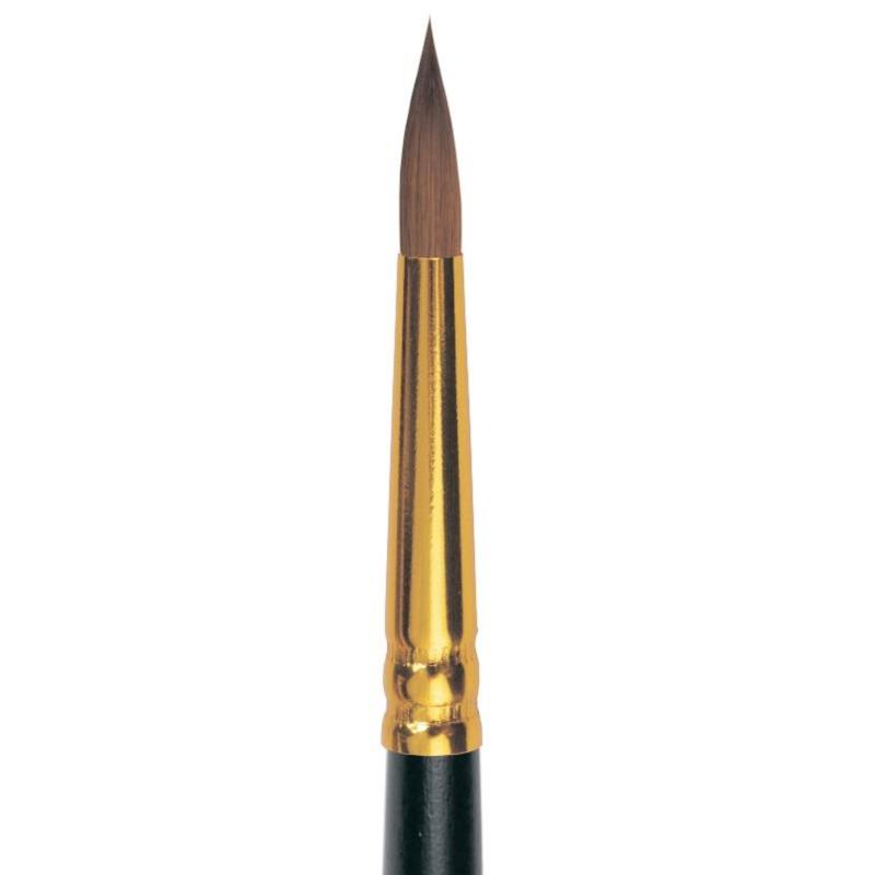 Круглая кисть "Roubloff" c укороченной выставкой из волоса колонка. Кисть прекрасно располагается в руке за счет сбалансированной длины. Анодированная алюминиевая втулка имеет прочное двойное сцепление с черной матовой ручкой и прекрасно сохраняет структуру пучка. Волос колонка очень эластичен, а укороченная выставка придает еще большую упругость, что делает эту кисть идеальной для работы как в акварельной, так и в пастозной технике. Форма ворсинок, собранных в виде конуса с идеальным зауженным кончиком, позволяет наносить плотные мазки и моделировать объем средних и крупных объектов, а также данная кисть прекрасно подойдет для изображения мелких и аккуратных деталей переднего плана композиции и вести тонкую изящную линию.
