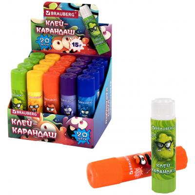 Клей-карандаш 15 г, кросс-серия МОНСТРИКИ, ассорти, BRAUBERG, 273237