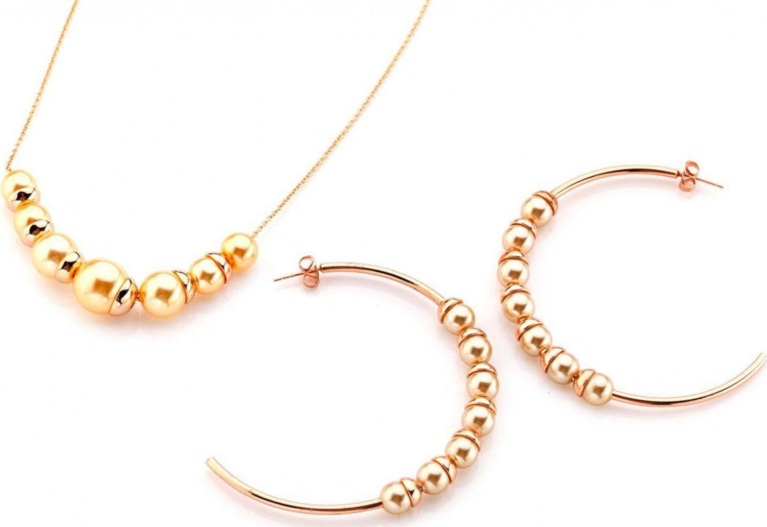 и броской! Взглянув на комплект «МАТИЛЬДА» из серег и колье, так приятно убедиться в этом еще раз. Элегантный, нежный и романтичный, он станет отличным подарком для каждой представительницы прекрасного пола с безупречным вкусом. • Колье и серьги представляют собой классические тонкие цепочки-нити, на которые нанизаны крупные камни настоящего жемчуга, отливающего золотом. • Боковая часть каждой жемчужины отделана изящным декором с золотым покрытием, напоминающим собой крошечную раковину. • Нежно-перламутровые переливы жемчужин придадут любому Вашему наряду торжественную нотку. Комплект «МАТИЛЬДА» — беспроигрышный вариант украшения для настоящей леди!