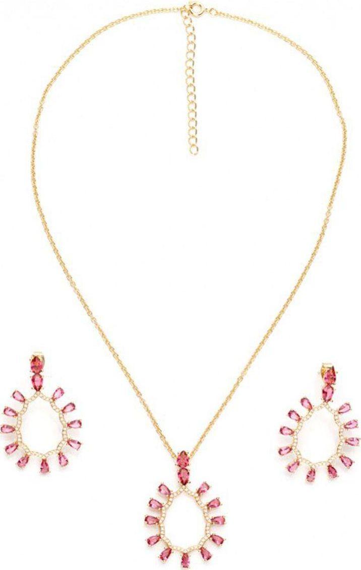 женщинам от природы. Комплект «Рубиновое великолепие» станет настоящей находкой для покорительниц мужских сердец! • Комплект состоит из колье на 40-сантиметровой цепочке с возможностью удлинения еще на 5 см и серег, выполненных в едином стиле. • Крупные камни рубиновых фианитов — главная изюминка комплекта «Рубиновое великолепие» — приковывают внимание окружающих, подчеркивая хрупкость и женственность своей обладательницы. • Колье и серьги станут прекрасным дополнением к Вашему наряду в разных жизненных ситуациях: на романтическом свидании, на светском мероприятии и даже в офисе. Комплект «Рубиновое великолепие» — почувствуйте себя настоящей королевой, перед очарованием которой не сможет устоять никто!