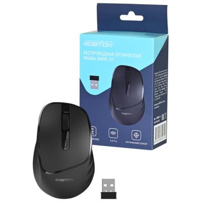 Компьютерная мышь ROBITON OMWL-01 офисная, беспроводная, 1200-3200DPI, 3кн+колесо, черный BL1