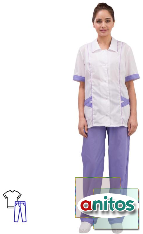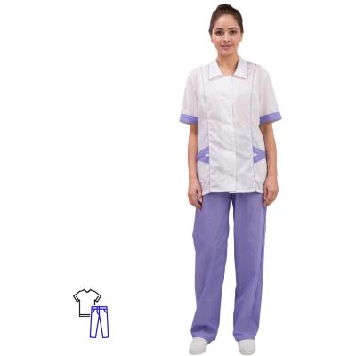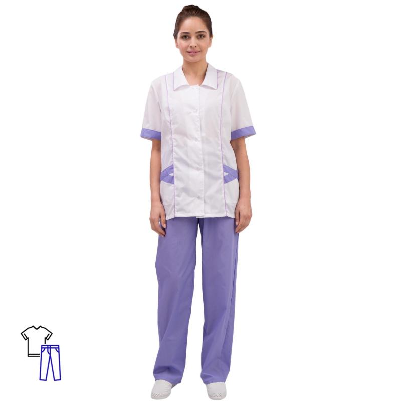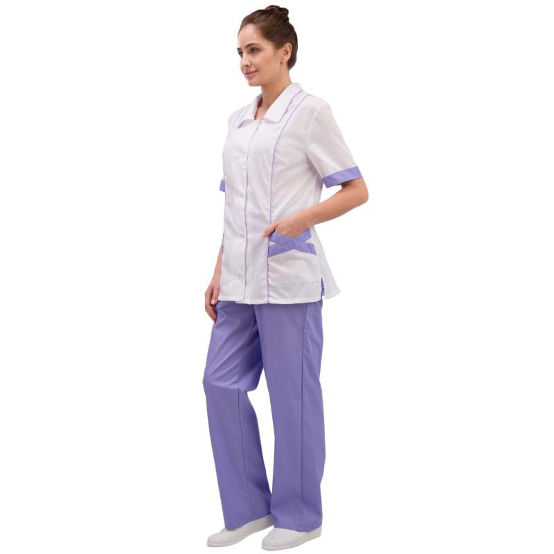Костюм хирургический женский м03-КБР белый/фиолетовый (размер 60-62, рост 158-164)