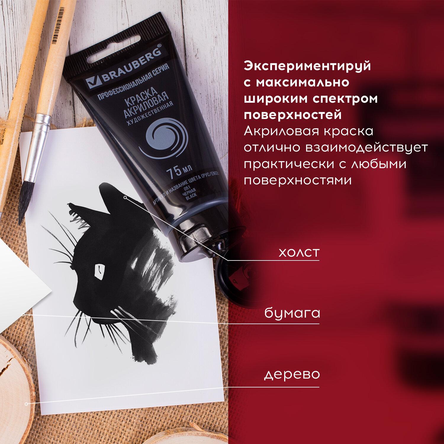 Краска акриловая художественная brauberg art classic, туба 75мл, ЧЕРНАЯ, 191116