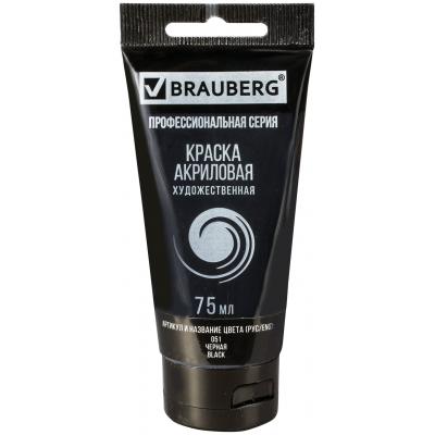 Краска акриловая художественная BRAUBERG ART CLASSIC, туба 75мл, ЧЕРНАЯ, 191116