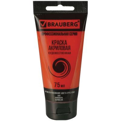 Краска акриловая художественная brauberg art classic, туба 75мл, КИНОВАРЬ, 191081