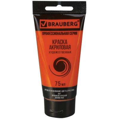 Краска акриловая художественная BRAUBERG ART CLASSIC, туба 75мл, ОРАНЖЕВО-КРАСНАЯ, 191080