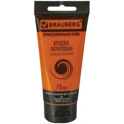Краска акриловая художественная brauberg art classic, туба 75мл, ОРАНЖЕВО-ЖЕЛТАЯ, 191079