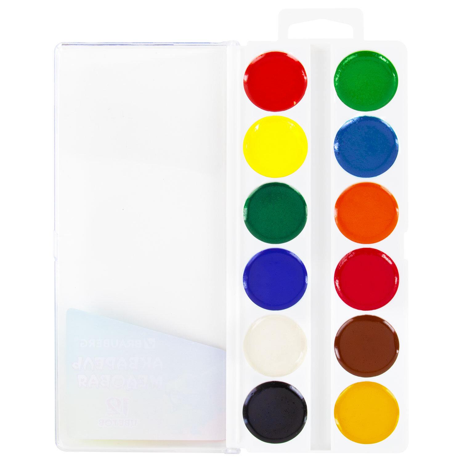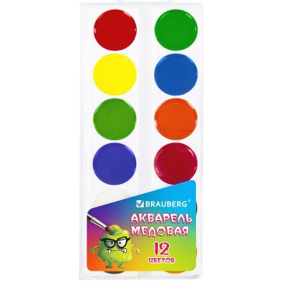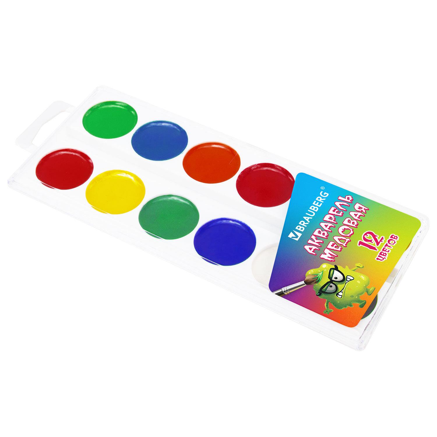 Краски акварельные BRAUBERG "МОНСТРИКИ", медовые, 12 цветов, круглые кюветы, 192641