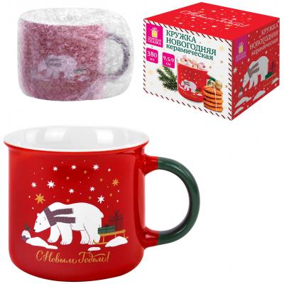 Кружка новогодняя 380 мл, "Белый мишка", 9,5х9 см, каменная керамика, ЗОЛОТАЯ СКАЗКА, 592542