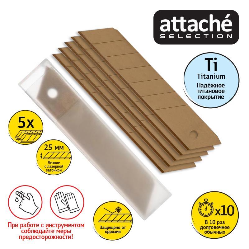 Лезвие для ножей запасное Attache Selection 25мм сегм.титан.пок,SK5, 5шт/уп