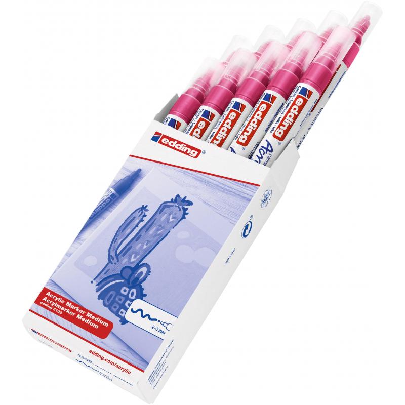 Акриловый маркер Edding 5100 — яркий представитель акриловой линейки Edding. Акриловые маркеры Edding — целый набор инструментов для живописи. Чернила содержат высокопигментированную светостойкую и перманентную акриловую краску на водной основе. Созданы для рисования как на бумаге или картоне, так и на холсте. Вы получите эффект настоящих красок, но в более удобной форме маркера. Благодаря своему круглому наконечнику с шириной штриха в 2-3 мм он представляет собой подходящий продукт для создания как достаточно тонких чётких линий, так и крупных форм. Цвет: розовый.