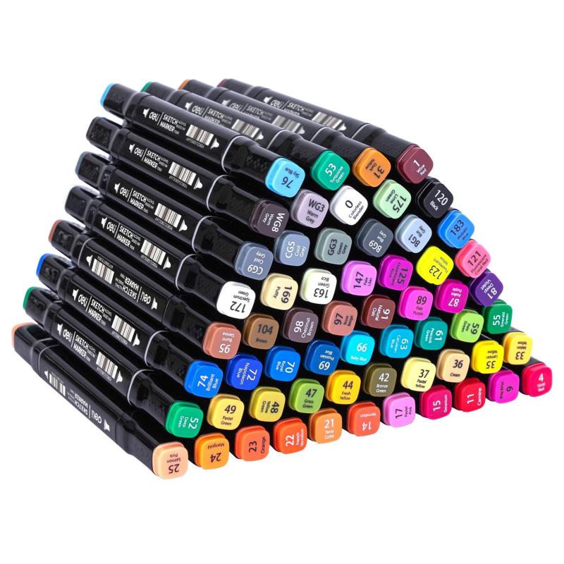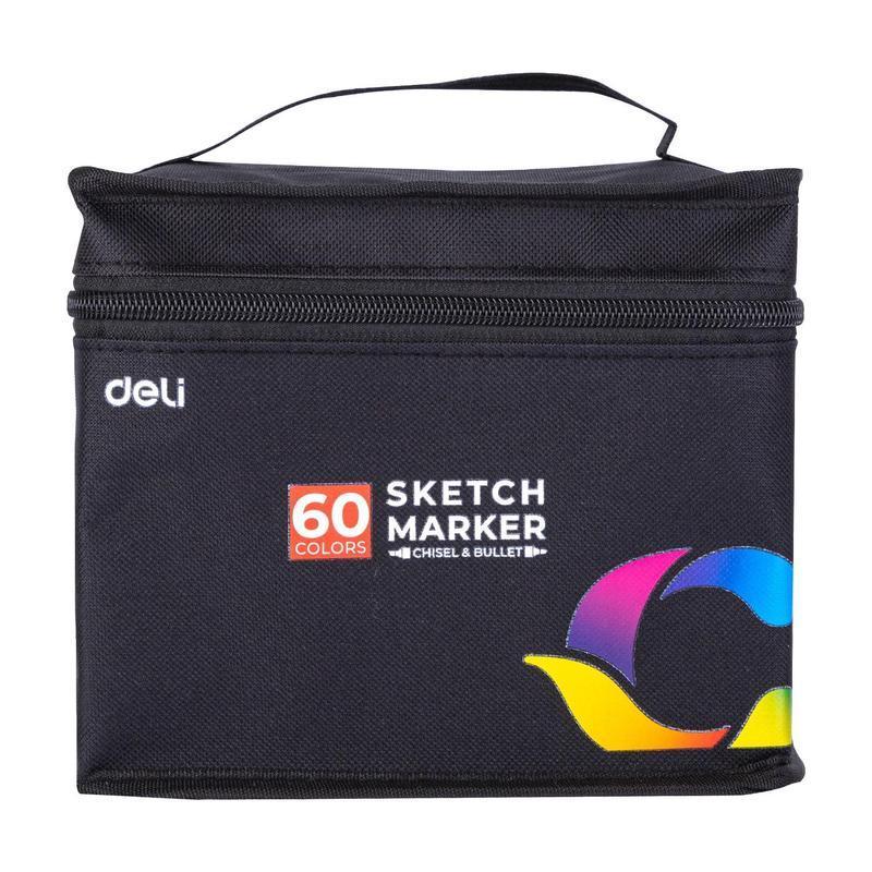Высококачественный набор из 60 скетч-маркеров от производителя Deli. Чернила скетч-маркеров Deli на спиртовой основе, быстросохнущие. Насыщенные цвета отлично смешиваются, создавая нужные вам оттенки и невероятные градиенты для вашего творчества. Маркеры двухсторонние: с одной стороны наконечник пулевидный (1 мм) - используется для прорисовки деталей, с другой - клиновидный, скошенный (6 мм), позволяет прокрашивать большие площади рисунка. Плотно прилегающие колпачки надежно защищают маркеры от высыхания. Каждый колпачок имеет определенный цвет, соответствующий цвету маркера, кроме этого, на колпачках написан цветовой код и название этого цвета. Чтобы вы могли взять маркеры с собой, мы сшили удобную текстильную сумочку с ручкой, которая закрывается на молнию. Каким видом творчества вы занимаетесь - создаете картины, разрабатываете дизайн одежды или интерьеров, возможно, вы архитектор или мультипликатор? Мы, сотрудники Deli, желаем, чтоб наши маркеры вдохновили вас на создание невероятных шедевров! Цвета в наборе: ярко-розовый, морковный, фиолетовый, бежевый, винный, лимонный, сетло-зеленый, зеленый, нежно-зеленый, карминовый, желтый, голубой, телесный розовый, сине-зеленый, темно-синий, еловый, светло-розовый, персиковый, томатный, небесно гобой, небесный, пурпурный, салатовый, оливковый, нежно бежевый, оранжевый, болотный, фиолетово-розовый, розовый, черный, ярко оранжевый, ярко голубой, кирпичный, светло лимонный, серо голубой, серый, темно серый, нежно серый, ярко серый, асфальтовый, светло-желтый, нежно бежевый, ярко пурпурный, светло лимонный, карминово красный, ярко розовый, ярко голубой, ярко зеленый, светло-коричневый, молочный, винный, коричнево фиолетовый, мятно зеленый, солнечный, серо коричневый, лиловый, серо голубой, бело моочный, томатный, светло-морковный.