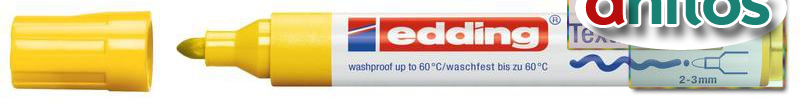 Маркер для текстиля Edding E-4500 CR предназначен для цветного оформления практически любых химически не обработанных тканей — хлопка, шёлка, льна и т. д. Пигментные чернила жёлтого цвета отличаются светостойкостью, быстро сохнут, практически не пахнут. Маркер по ткани имеет наконечник круглой формы, толщина линии — 3 мм, что позволяет делать как тонкие, так и более заметные надписи. Подходят для творчества, создания уникальных дизайнов одежды или декоративных предметов. Для фиксации надпись или рисунок необходимо прогладить утюгом (без пара). После фиксации изделие можно стирать при температуре не выше 60 °С. На тёмных тканях надпись видна не будет.