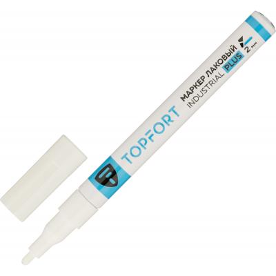 Маркер промышленный лаковый TOPFORT Industrial Plus для агрессивной среды белый 1-2 мм (2096981)<br><br>Маркер промышленный TOPFORT Industrial для универсальной маркировки белый (2 мм) предназначен для промышленной непрозрачной маркировки металла, стекла, пластика, дерева, резины, камня, картона, кирпича, текстиля, кожи (материал), бумаги, бетона. Краска содержит высококонцентрированный пигмент, хорошо ложится на гладкие и шероховатые поверхности. Может применяться для письма на жирных, пыльных, грязных поверхностях. После высыхания лаковые чернила устойчивы к воздействию света, атмосферных осадков, смазочных материалов, механическому истиранию. Создаёт стойкую линию толщиной 2 мм. Длина маркера — 143 мм. Цвет чернил : белый.<br>Особенности:<br>— Краска на усиленной масляной основе (Италия).<br>— Устойчивый к износу усиленный акриловый круглый наконечник (Япония).<br>— Толщина линии 2 мм.<br>— Материал корпуса — алюминий.<br>— Температурный режим использования : от 0 до +40 °С.<br>— Температурный режим хранения: от 0 до +60 °С.<br>— Температурная устойчивость надписи: от 60 до +1000 °С.<br><br>Инструкция по применению:<br>1. Перед использованием интенсивно встряхните маркер с закрытым колпачком.<br>2. Снимите колпачок, прижмите наконечник к поверхности, надавите до упора и удерживайте пока не проступит краска.<br>3. Применять после того как убедитесь, что наконечник полностью пропитан краской исходного цвета. Избегайте чрезмерного давления на наконечник при дальнейшем использовании.<br><br>Предостережения: плотно закрывайте колпачок после применения, держать маркер вдали от источников тепла и воспламенения.