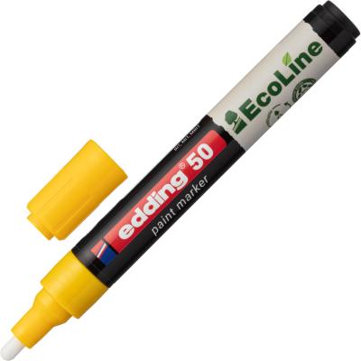 Маркер Edding 50 входит в коллекцию экологичных маркеров Edding Eco Line. Чернила не содержат ксилола и толуола, а корпус маркера выполнен из 85% переработанного пластика, что способствует сокращению выбросов CO2 при его производстве. Прочный наконечник, устойчивый к трению, обеспечивает долговечность при использовании на шероховатых поверхностях. Поток чернил регулируется клапаном для равномерного нанесения.