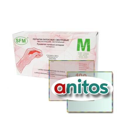 Мед.смотров. перчатки латекс. нестер. н/о текстурир. sfm (s) 50пар/уп