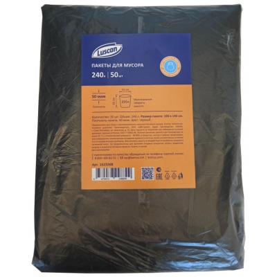 Мешки для мусора Luscan 240 л черные (ПВД, 50 мкм). Пакеты для мусора Luscan предназначены для сбора и кратковременного хранения бытового мусора. Пакеты обладают повышенной прочностью для тяжелого мусора и удобны в использовании как дома, так и в любых общественных местах. Изготовлены из полиэтилена высокого давления (ПВД). Не являются ароматизированными и биоразлагаемыми. Упакованы по 50 штук в упаковке.
