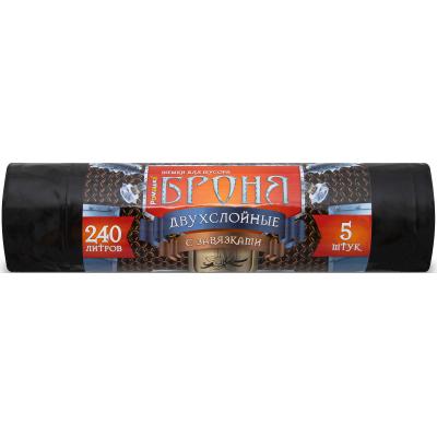 Мешки для мусора ПВД 240л 55мкм 5шт/рул черн 110х115см, Броня, с завязк