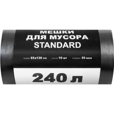 Мешки для мусора ПВД standard 240л 80мкм 10 шт/рул черные 85х130см