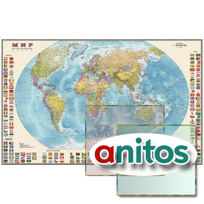 Карта настенная "Мир. Политическая карта с флагами", М-1:30 млн, размер 120х77,5 см, ламинированная, 380, ОСН1224000