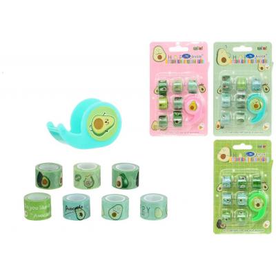 Набор подарочный канцелярский: детский "АВОКАДО"; декоративный скотч 7 штук+диспенсер, пластиковая упаковка на подложке /13,5*8 см/.