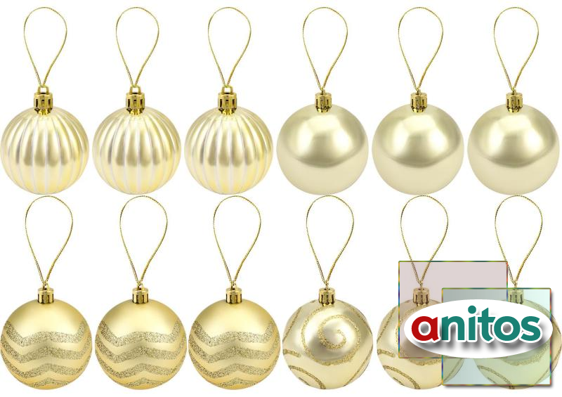 Набор шаров елочных Новогоднее украшение Триумф 12шт,7см,золотист НШ-1493