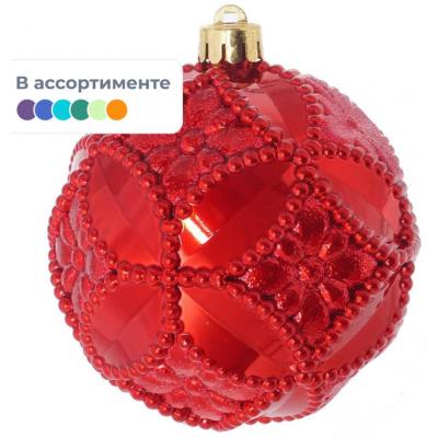 Набор шаров ёлочных Карнавальный узор пластик красные (диаметр 10 см, 2 штуки в упаковке)