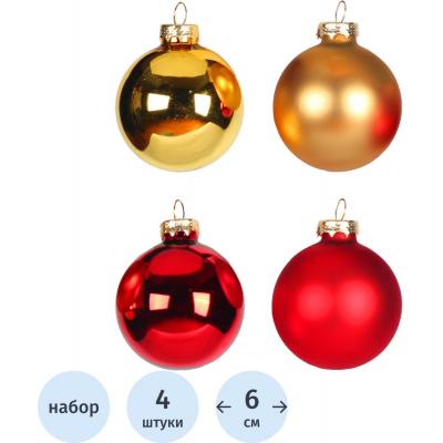 Набор шаров ёлочных Magic Time стекло красные/золотистые (диаметр 6 см, 4 штуки в упаковке)