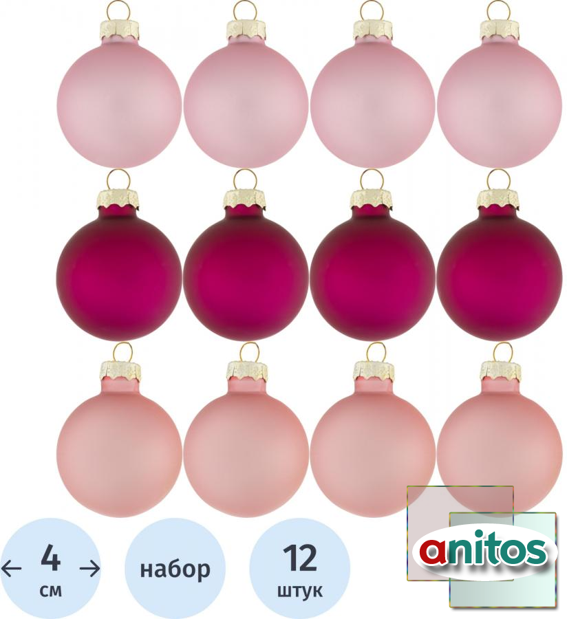 Набор шаров ёлочных Magic Time стекло розовые (диаметр 4 см, 12 штук в упаковке)