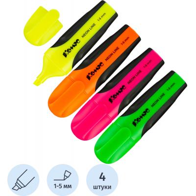 Набор текстовыделителей маркеров Комус neon line 1-5мм наб 4цв