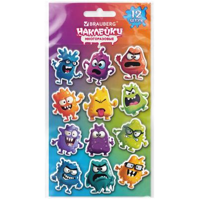 Наклейки зефирные кросс-серия МОНСТРИКИ, многоразовые, 10х15 см, brauberg, 666055