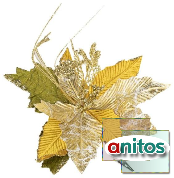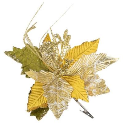 Новогоднее украшение елочное Золотой цветок на клипсе 23x23x31см 88685