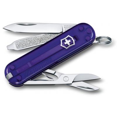 Нож-брелок VICTORINOX Classic SD Colors "Persian Indigo", 7 функций, с лезвием и инструментами из нержавеющей стали и рукоятью из полупрозрачного пластика цвета индиго.