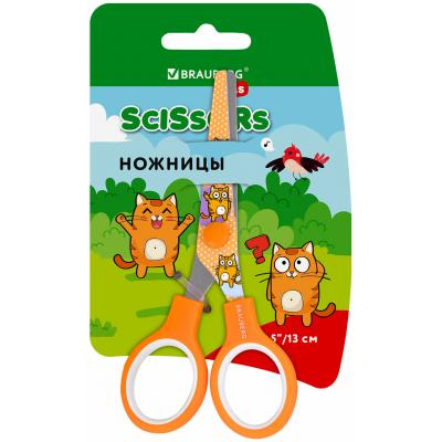 Ножницы 130 мм оранжевые, с цветной печатью "Котики", закругленные, BRAUBERG KIDS, 238351