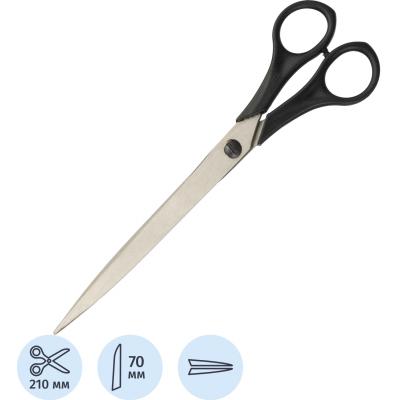 Ножницы Крамет 210 мм симметричные пластиковые ручки чёрного цвета<br><br>Ножницы подходят для универсального применения в домашних и рабочих условиях. Остроконечные лезвия из нержавеющей стали обеспечивают точный и чистый рез. Двухсторонняя заточка сохраняет рабочие свойства инструмента даже при интенсивном использовании.<br><br>Модель оснащена симметричными пластиковыми ручками чёрного цвета с одинаковыми кольцами, что делает её удобной как для правшей, так и для левшей. Эргономичная форма ручек снижает нагрузку на пальцы при длительной работе. Общая длина ножниц — 210 мм, длина лезвий — 70 мм.